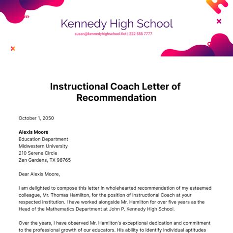 Download SAMPLE RECOMMENDATION LETTER INSTRUCTIONAL COACH PDF